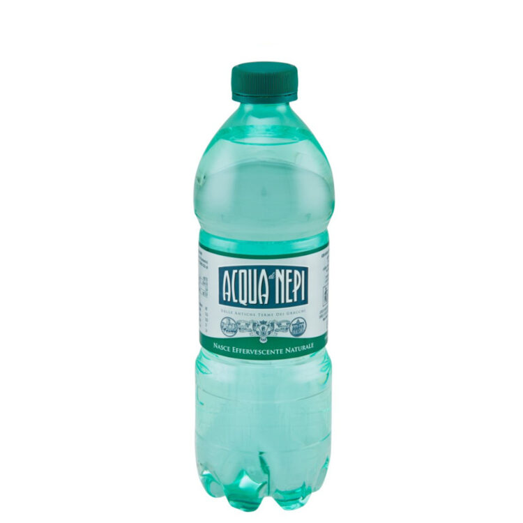 Acqua Nepi effervescente naturale 0,5 lt in bottiglia di plastica.