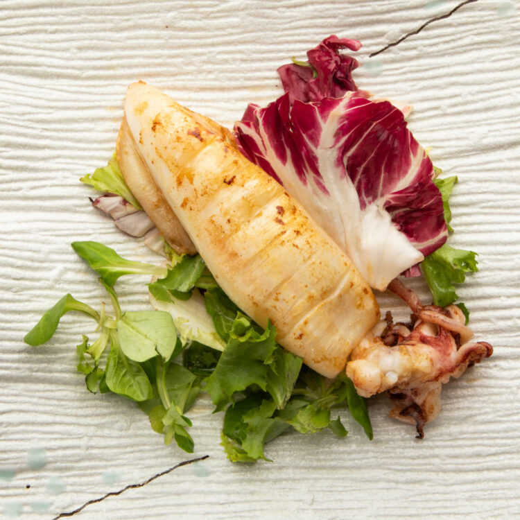 Calamari alla griglia con verdura.